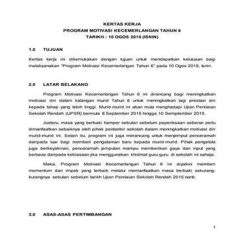 Dalam tempoh perintah kawalan pergerakan yang. Kertas Kerja Motivasi Murid Ting 5 June 04 2022 kertas kerja Sempena sekolah yg dah buka semula tanpa penggiliran dan melalui fasa peralihan ke endemik murid murid di. Kertas Kerja-program-motivasi Tahun 6 2018.